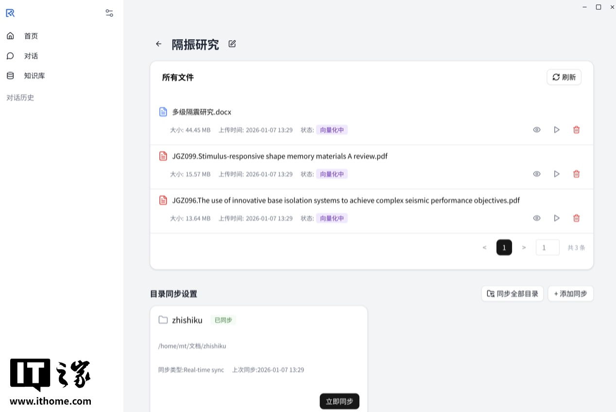 使用方式也很简单,首先打开 AI OS 中自带的 RAGBASE 应用程序,在知识库选项卡中,设置知识库文件的目录,此处还可以设置是否自动扫描目录中的文档内容。