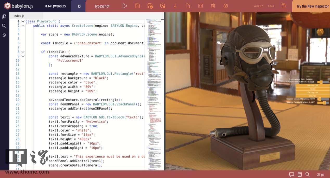 在 3D 图形渲染方面,IT之家测试了 MTT AIBOOK 基于 Babylon.js 引擎的在线 3D 图形渲染能力。Babylon.js 是目前最流行的开源 Web 3D 引擎之一,由微软主导开发,其基于 WebGL 和 WebGPU 标准,提供了 PBR 材质(物理渲染)、动态阴影、后处理特效、粒子特效、高分辨率纹理等一系列先进图形功能,能够让浏览器基于页面实现精致的 3D 画面实时渲染。无论是开发网页游戏、电商产品 3D 展示,还是构建元宇宙与数字孪生应用,Babylon.js 都是目前最成熟、易用的 Web 3D 选项之一。在下面这一复杂场景中,其实时渲染帧率可以稳定在每秒 21fps。