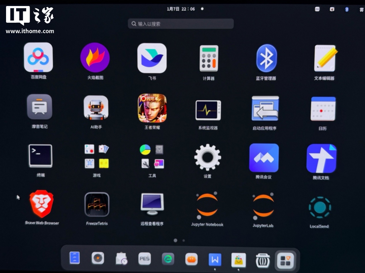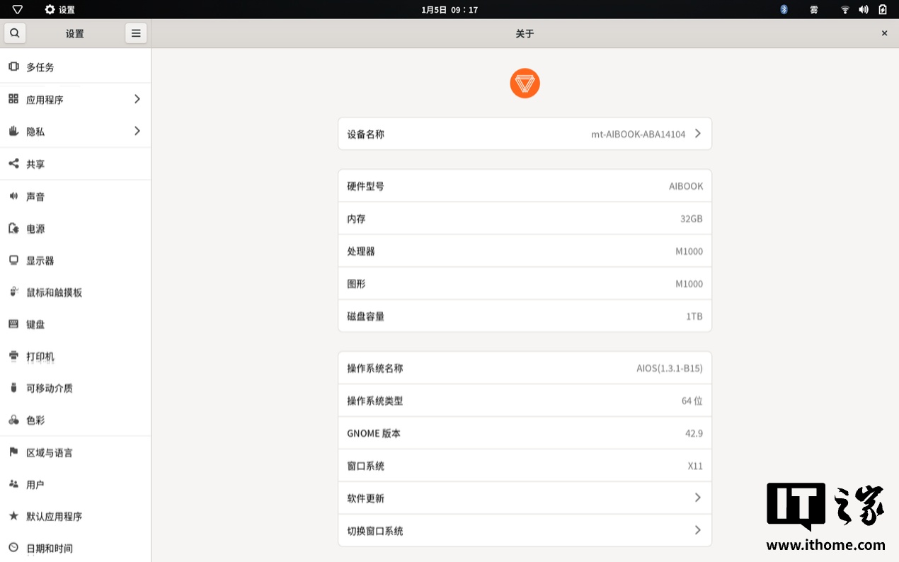 二、原生 AIOS 初体验:极客桌面,简洁而高效1. 系统初体验按下电源键,进入 MT AIOS 系统,第一印象是清晰与简洁。不像常见的 Linux 那种粗糙的桌面环境,AIBOOK 界面带有一种冷静的极客风。