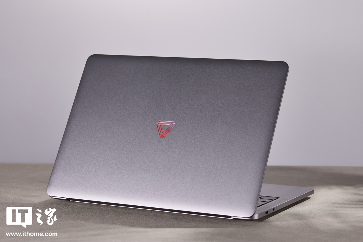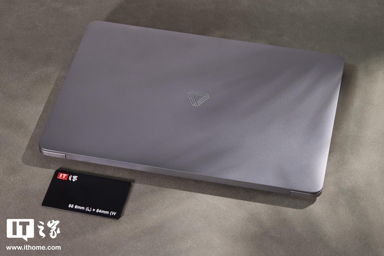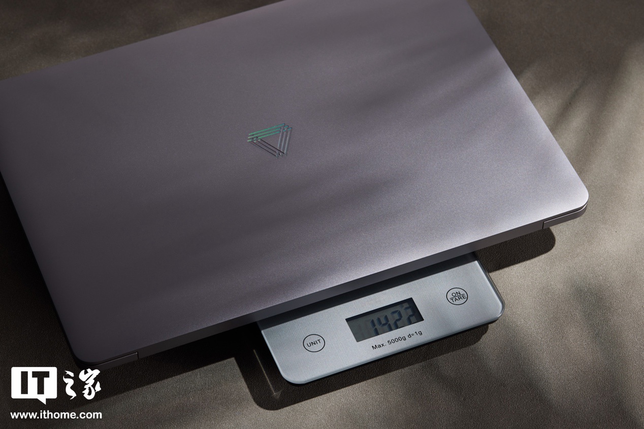 IT之家的实测重量 1.42kg,比官方数据更轻。AIBOOK A 面极为简约,只有一个银色亮面摩尔线程 Logo,由于采用了镭雕工艺处理,因此在不同角度下会呈现出不同的颜色,从远处看会有种它的 Logo 支持 RGB 灯光的错觉。